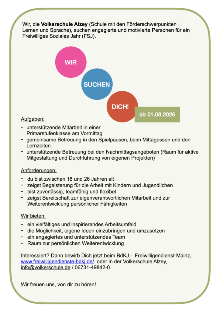 Wir sind Ansprechpartner für den gesamten Landkreis Alzey-Worms. Für die jeweiligen Schwerpunktschulen sind die Förderschullehrkräfte vor Ort die primären Ansprechpartner.